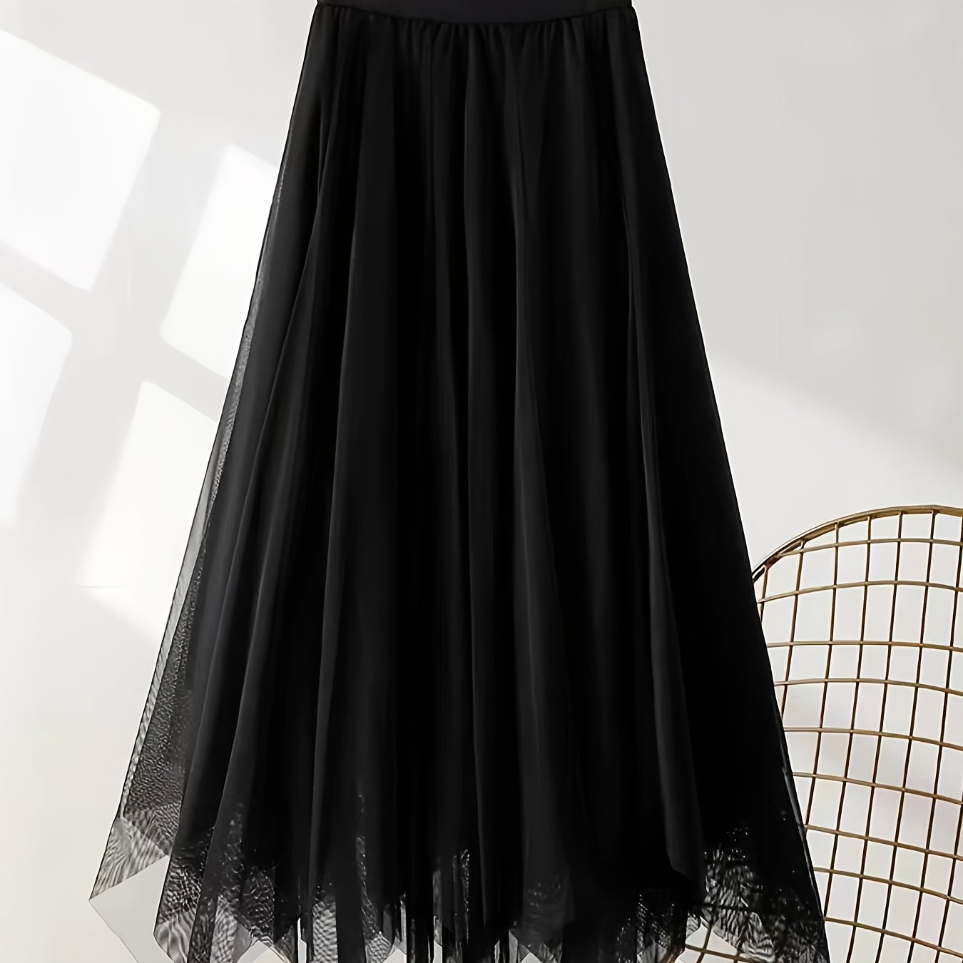 TEMU 여성용 하이웨이스트 블랙 메쉬 아сим메트리 레이어드 A라인 미디 스커트