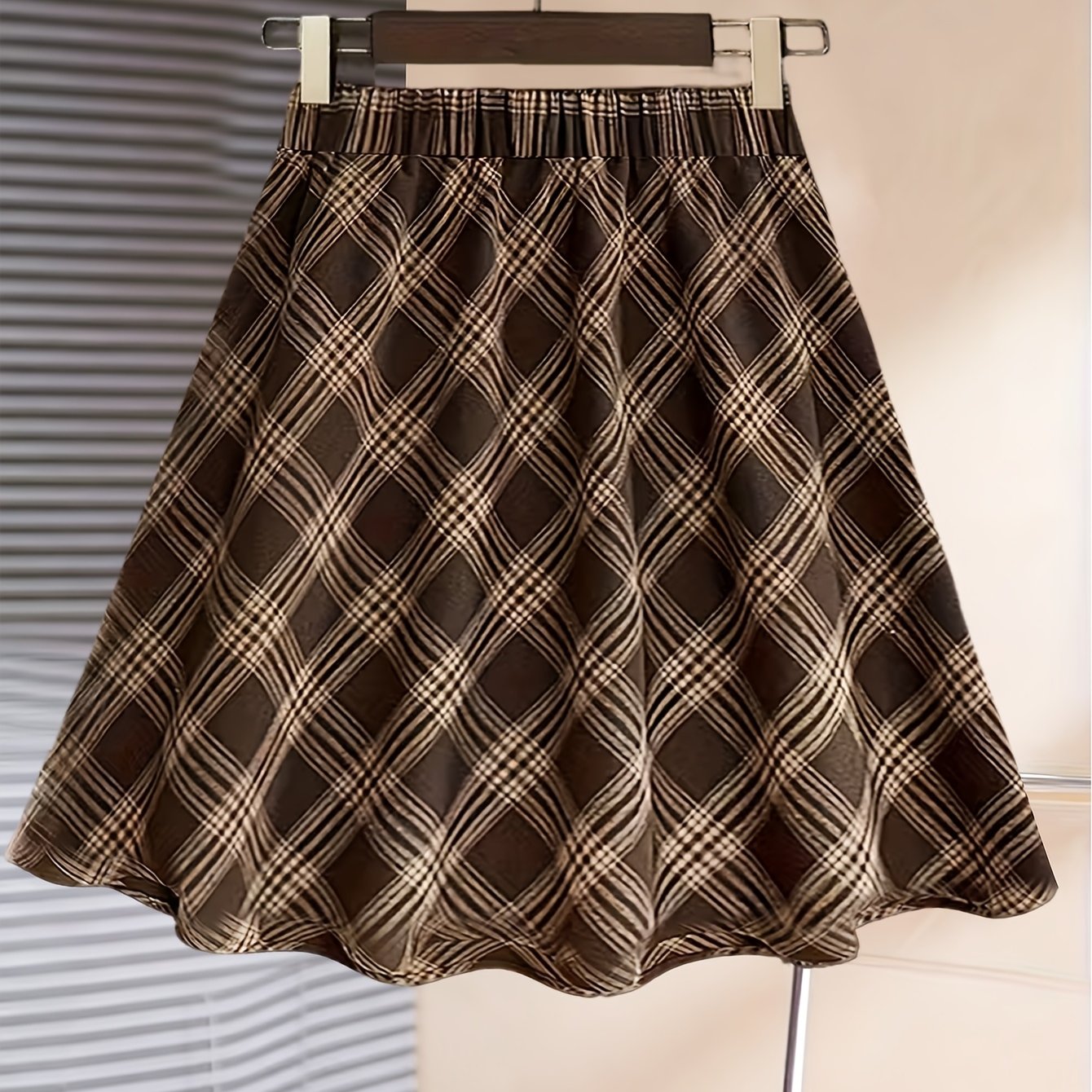 TEMU 플래드 A라인 스커트, 백 지퍼 디자인, 가을/겨울용 다용도, 반바지 스타일 안감으로 노출 방지