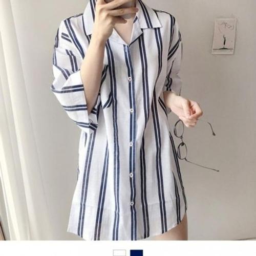 [옷자락] 여자 린넨남방 스트라이프 루즈핏 힙커버 여름 셔츠