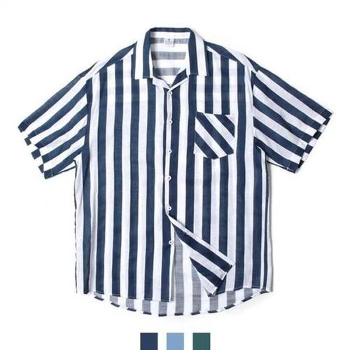 [셀러허브_여성트랜드패션]스트라이프 오픈카라 여름셔츠 남자린넨셔츠