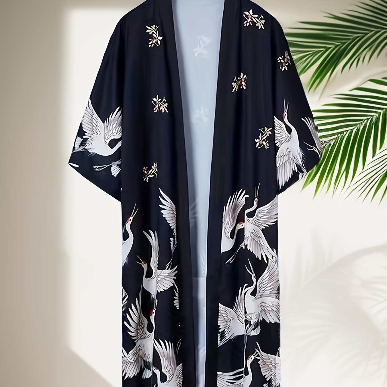 TEMU 남녀 공용 중국 스타일 긴 기모노 로브 - 가벼운 오픈 프론트 목욕 가운, 깊은 V넥, 전체 프린트, 레귤러 핏, 해변, 캐주얼 & 잠옷 - 남녀 공용 커플 기모노, 해변 커버업, 우아한 디자인, 신축성 없는 원단