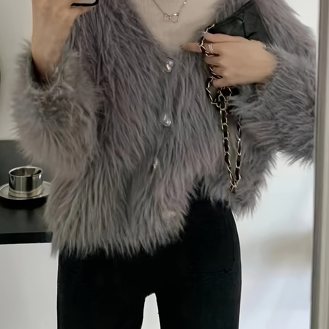 TEMU 2024 신상 여성용 코지 레트로 V넥 가디건 - 부드러운 인조 워터독 퍼, 루즈핏 긴팔 겨울 스웨터, 가을 & 겨울 캐주얼 시크 룩, 귀여운 스웨터, 편안한 핏 의류, 겨울 아우터, 독특한 패션 선택, 중간 신축성 원단