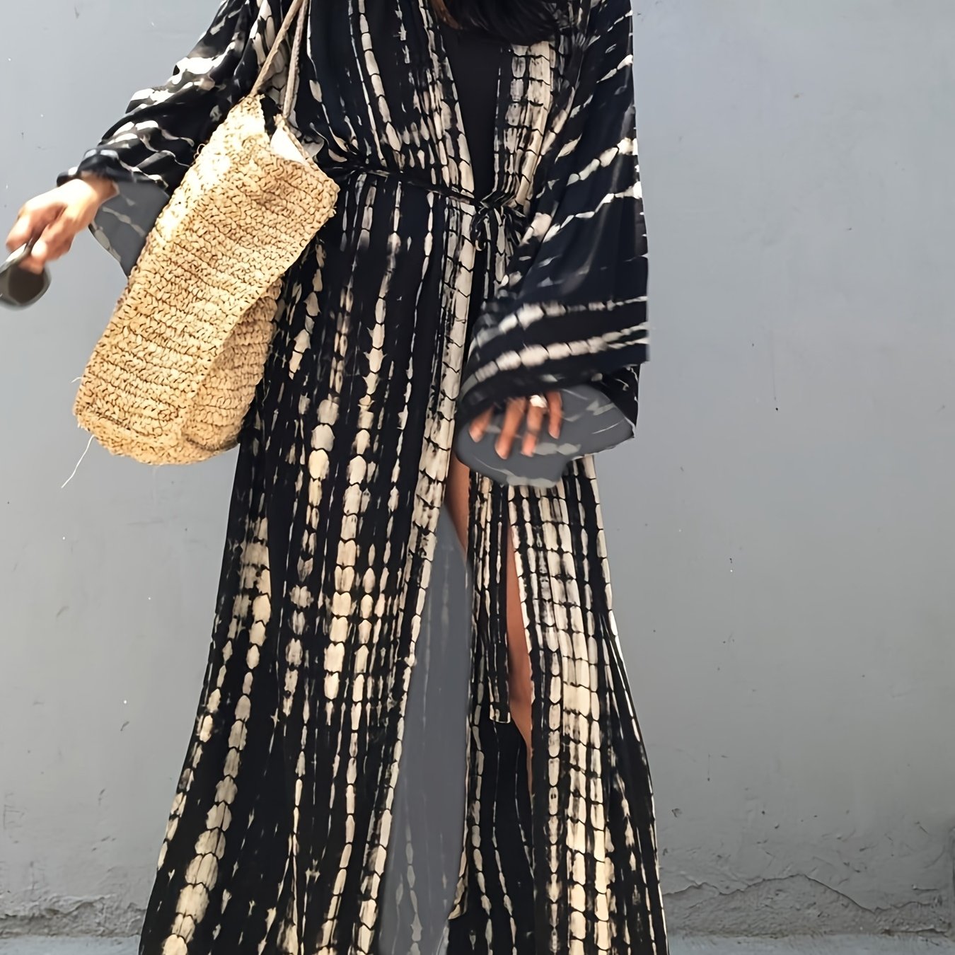 TEMU 여성 여름 해변 스타일 플러스 사이즈 가디건 기모노 라운지웨어 프린트 비키니, 해변 휴가용