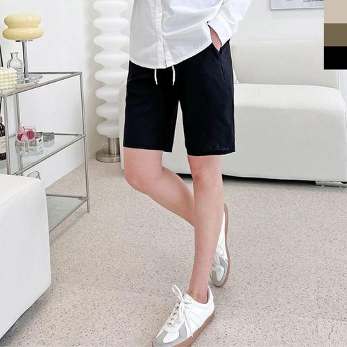 [신상오픈런]여성 린넨 코튼 무지 하프 밴딩 반바지