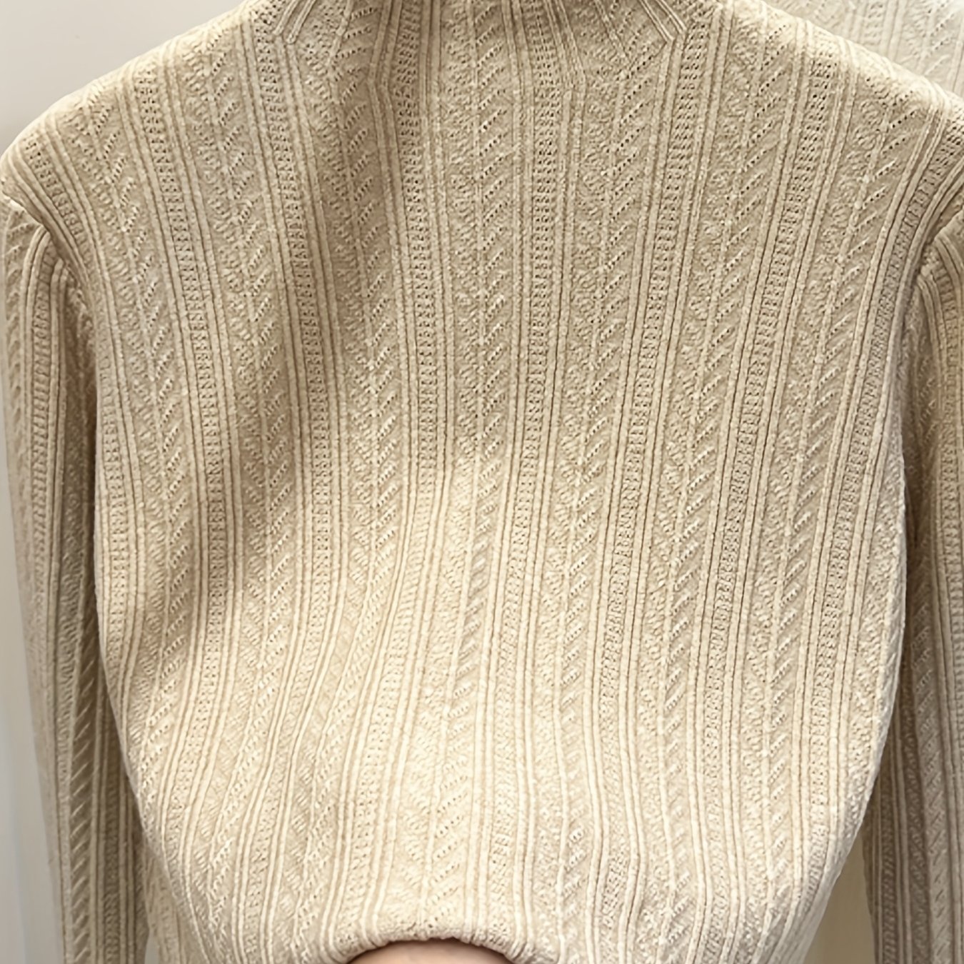 TEMU 여성용 우아한 긴팔 리브드 스웨터 - 하이넥, 슬림핏, 따뜻한 풀오버, 솔리드 컬러와 플리스 안감, 가을/겨울에 완벽한 스타일, 우아한 레이어링 피스, 우아한 스웨터 | 우아한 스타일 | 리브드 텍스처