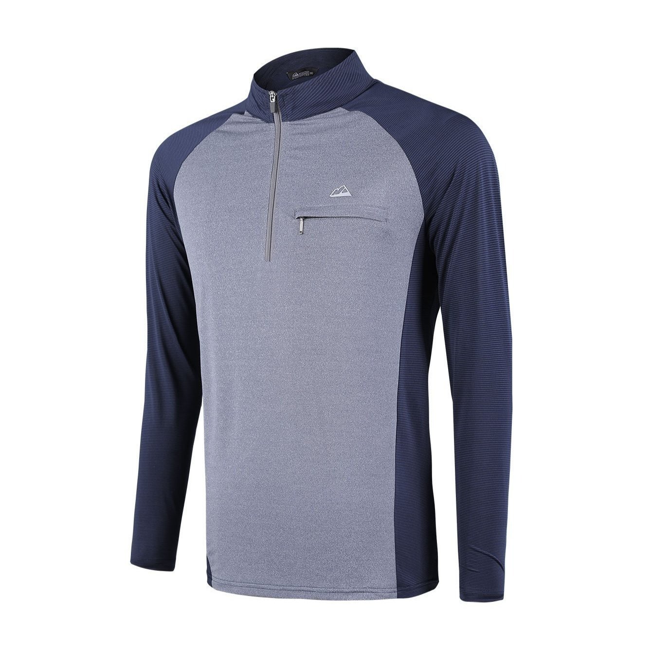 TEMU [이지바이] 남성용 멜란지 배색 냉감 긴팔 집업 티셔츠 오션블루 (M5ST21)