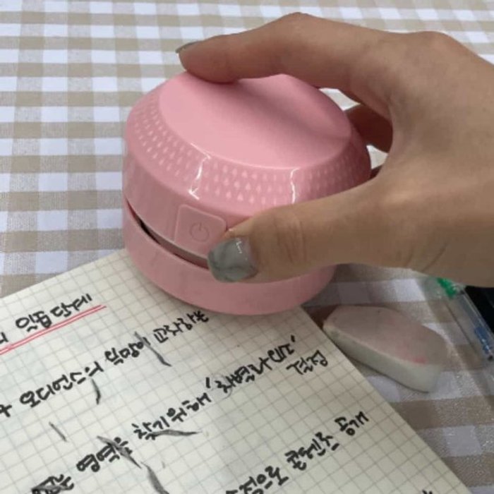 엄지척 책상 지우개 똥가루 청소기 핑크 가루청소기