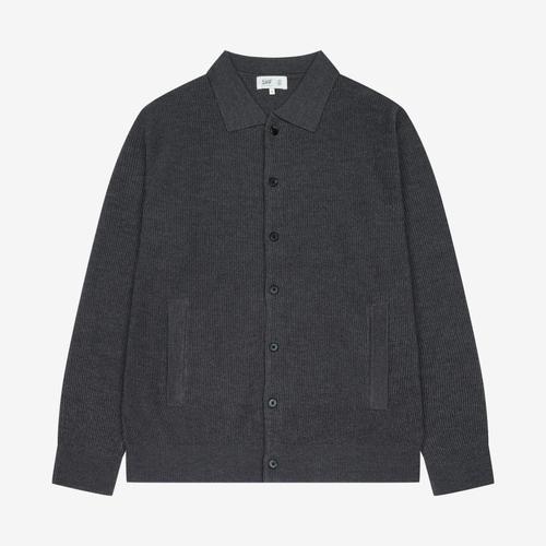 [지이크]세로 변형 조직 카라 가디건 멜란지그레이 (PJUCH8004)