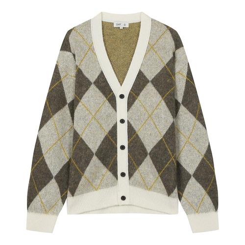 [지이크][STEIN GARTEN] 울 알파카 아가일 패턴 루즈핏 가디건 카키프린트 (PJUCX8903)