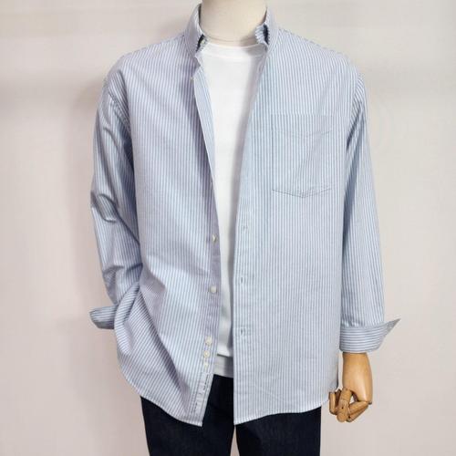 [파렌하이트]옥스포드 스트라이프 캐주얼 셔츠 그레이_B12FL