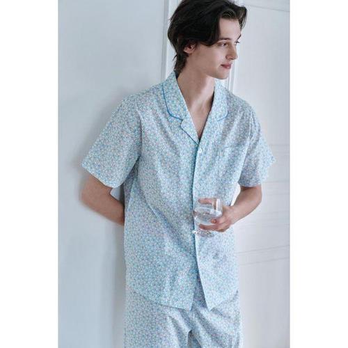 [솔브]비너스(행사) 쿨 지지미 잔꽃나염 반팔 커플파자마 세트 SVPA4534M_VPA4534W_BU_C