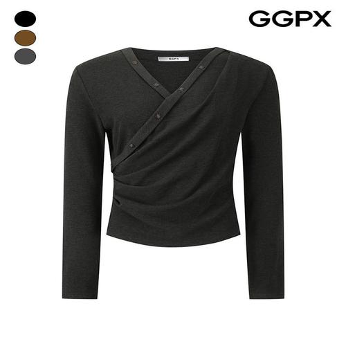 [GGPX]버튼 디테일 랩스타일 드레이프 티셔츠 (GPB_TS012F)