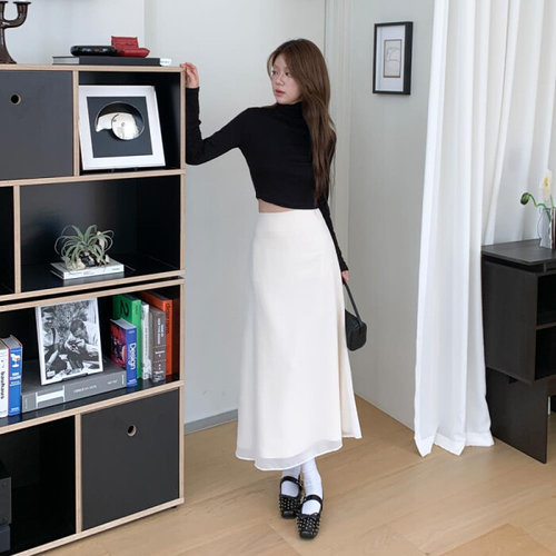 [옷자락]여성용 클래식 A라인 롱 스커트 지퍼 디테일