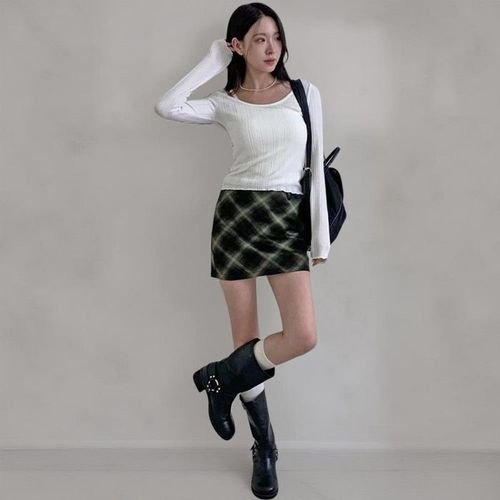 [옷자락] 여성용 체크 하이웨이스트 지퍼 미니스커트