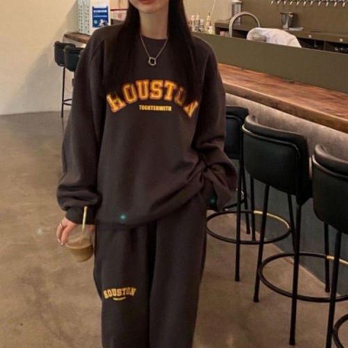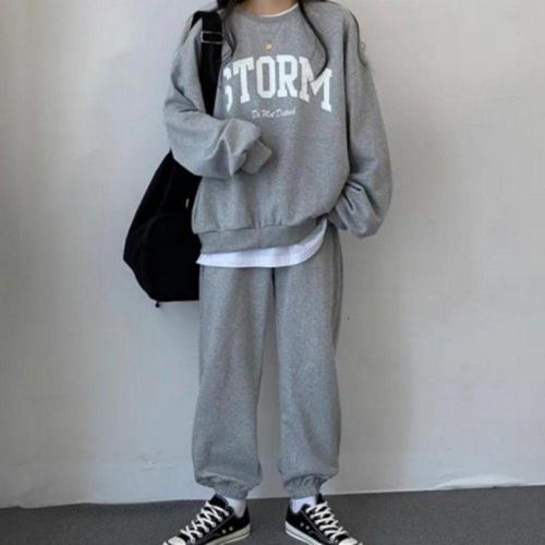 [유야]여성 레이어드 면 레터링 맨투맨 조거팬츠 세트 SPST0139 봄 가을