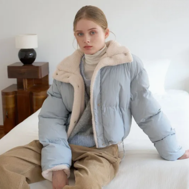 [앙스블랑] 천연 양모 하이넥 여성 라이더 양털 국내제작 무스탕자켓 926 <한시행사>