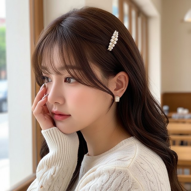 여성 사무실룩 모임룩 클래식 웨이브 진주 스페이스룩 집게핀