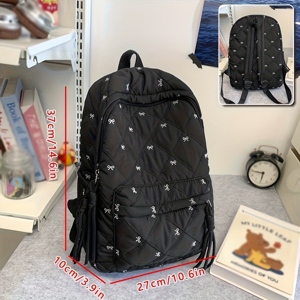 TEMU 스타일리시 한국식 여성용 리본 백팩, 귀여운 대용량 내구성 출퇴근 노트북 가방 - 학교 및 일상용