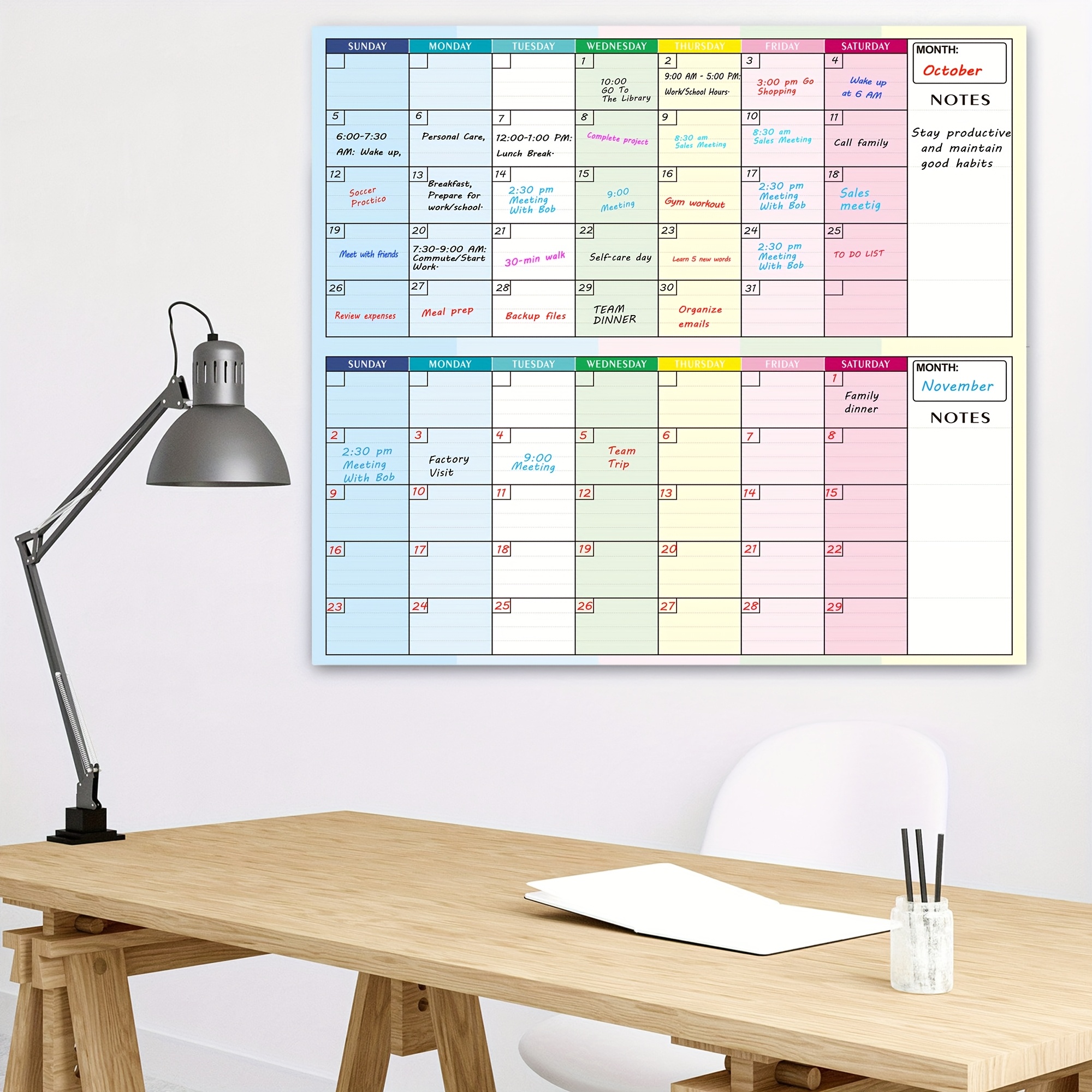 TEMU 2개월 쓰기 가능한 벽걸이 캘린더 | 25.6×25.2인치 날짜 없음 월간 화이트보드 플래너 | 재사용 가능한 스케줄 계획 보드, 일요일부터 시작 | 격자와 노트 영역이 있는 넓은 쓰기 공간 | 마커 2개 및 양면 테이프 포함 | Suita