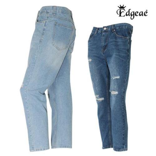 [보스케]MARIO 남성 봄 가을 찢어진 일자 9부 워싱 데님 청바지