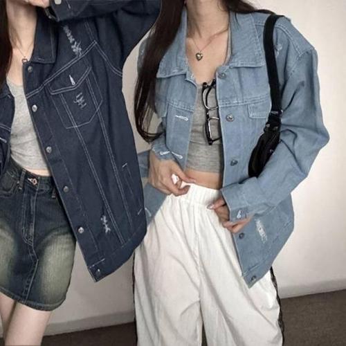 [엄지척]여성 데일리룩 캐주얼 찢청 데님 스타일리쉬 청자켓_20339642_667501