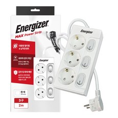 에너자이저 고용량 멀티탭 3680W 개별스위치 과부하차단 슬림 납작 화이트 4구 4M