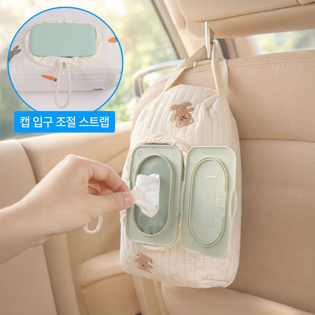 툭걸어 물티슈 파우치 100%순면 커버 가방 보관함 걸이 휴대용 차량용 티슈 케이스