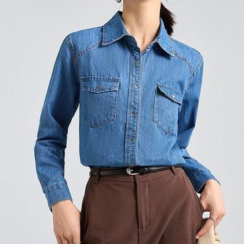 [에이치플러스몰]데님 사이드포켓 셔츠 하객 뽀글이 여성 뷔스티