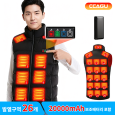 CCAGU 발열조끼 26구역 겨울 야외근무 방한 패딩자켓 경량 등산 낚시 작업복 골프 캠핑 차박 USB열선조끼 20000mAh 보조배터리 포함