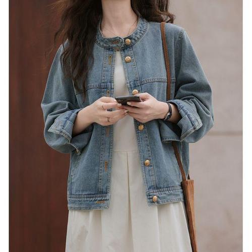 [에이치플러스몰]중청 데님 차이나 넥 데일리 여자 청자켓