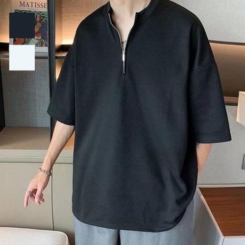 [엄지척]남자 반집업 맨투맨 반팔 티셔츠 오버핏 차이나카라_20431427_667501