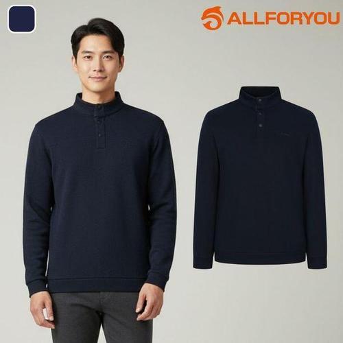 휠렉스 남성 헨리넥 버튼 맨투맨 긴팔 데일리 상의 W53