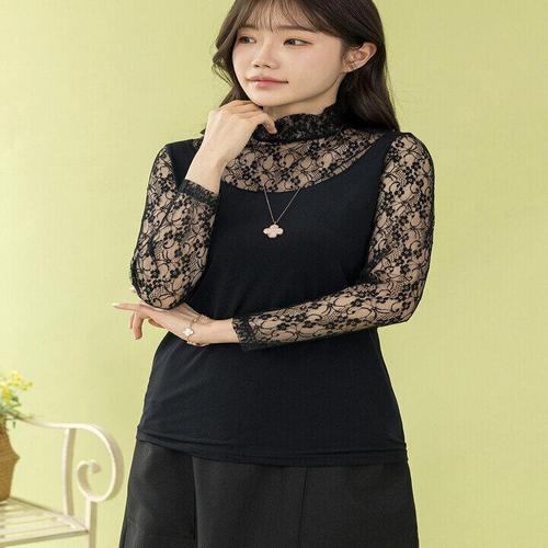 [디얼마미][디얼마미] 레이스 찰랑 반목 티셔츠 /마담 미시 중년 여성 빅사이즈 40대 50대