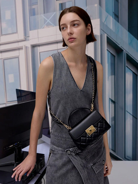 [찰스앤키스] 페이턴트 스퀘어-퀼팅 체인-핸들 백