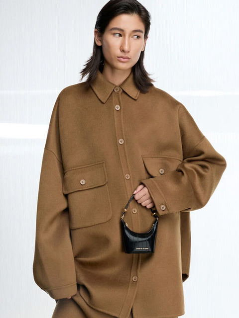 [찰스앤키스] 케리 리사이클 스웨이드 & 인조 시어링 체인-핸들 크로스바디 백 CK2-80782515-2