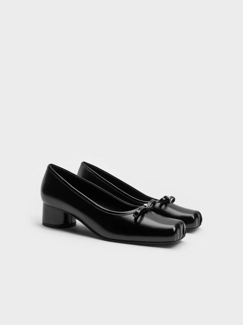 [찰스앤키스] 보우 메탈릭 악센트 스퀘어 토 블록 힐 펌프스_2colors CK1-60361589