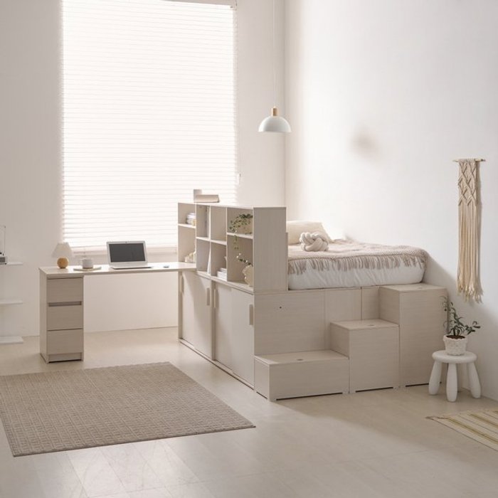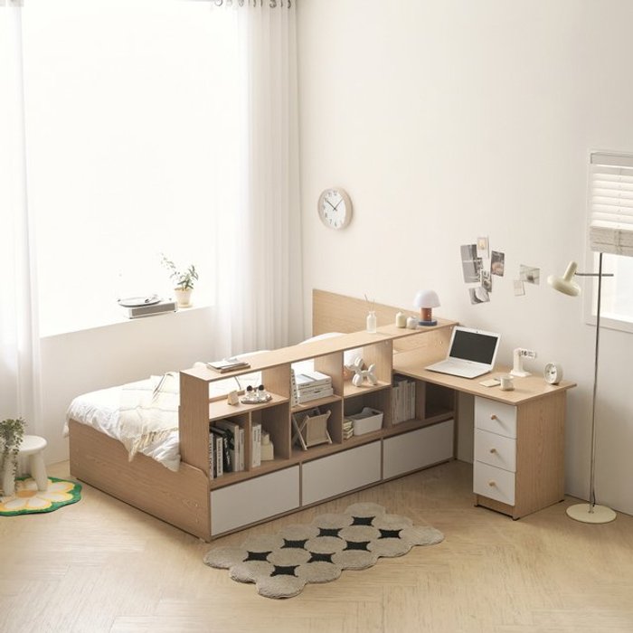 인터데코 작은방 일체형 가구 침대 수납장 책장 책상 올인원 P0000CEA