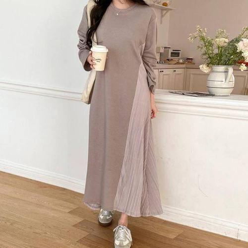 [옷자락]여자 캐주얼 무지 찰랑핏 라운드넥 긴팔 롱 원피스