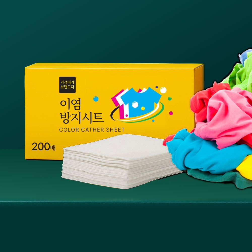 TEMU [200매] 이염방지시트 세탁시트 국내생산 대용량 200매 / 먼지 흡수 천, 염색 번짐 방지, 옷 보호 강화