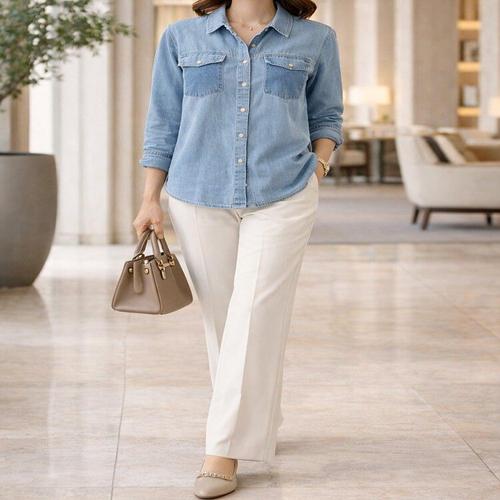 여성 간절기 레귤러핏 웨스턴 데님 면 청남방 청셔츠 346506