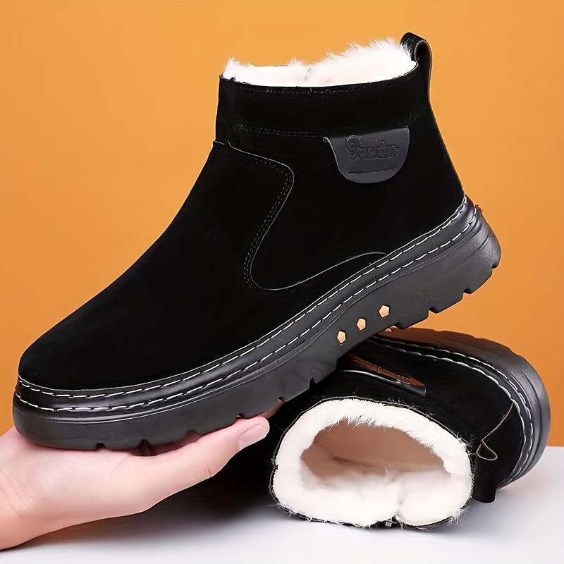 TEMU 새로운 겨울용 두꺼운 남성 부츠, 플러시하고 따뜻한 남성 신발, 남성용 슬립온 겨울 신발, 대형 사이즈 겨울 남성 신발