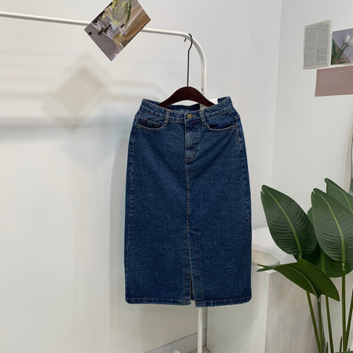[옷자락]여성 중청 미디 데님 스커트 앞트임 키치무드_P409192386
