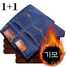 1+1 남성 데님 팬츠 가을 겨울 빅사이즈 스판 일자 남자 바지 캐주얼 루즈핏 기모 도톰 청바지 SJS