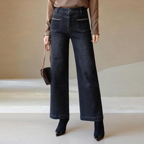 [스타일온미][스타일온미] 스텔로 다이아 퀄팅 샤이닝 체인 라인 세미 와이드 일자 데님 팬츠