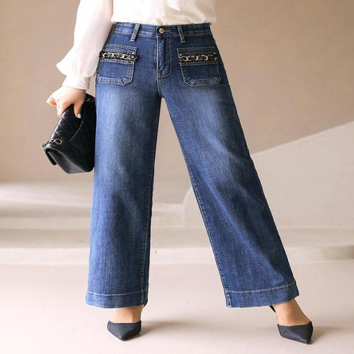 [스타일온미][스타일온미] 리치엔 시크 트위드 골드 체인 앞 포켓 세미 와이드 데님 팬츠