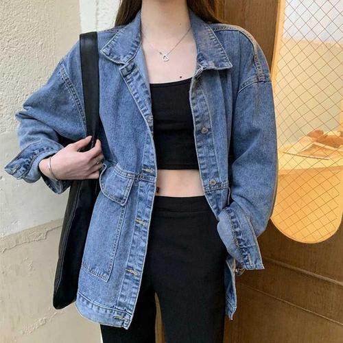 [에이치플러스몰]빈티지 스타일 오버핏 청자켓 캐주얼 데일리