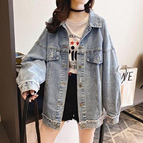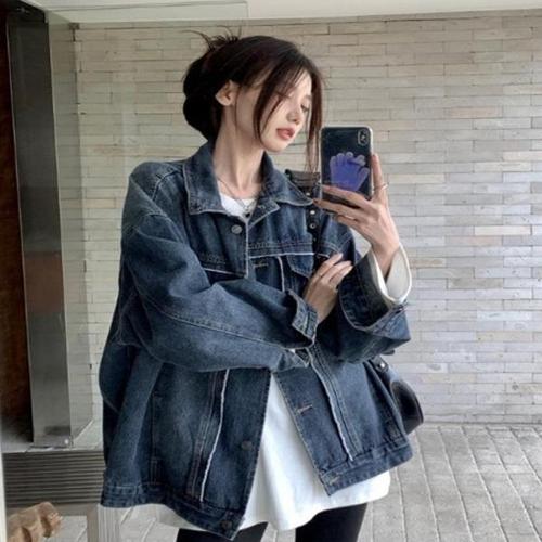 루즈핏 선물 캐쥬얼 스타일 데님자켓 코디 여성데님 (WFKKUYV)