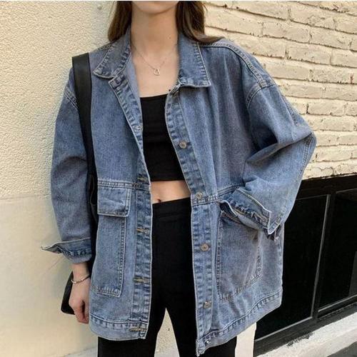 [짝꿍닷컴] 2컬러 포켓 디테일 오버핏 여성 데님 자켓 WS-DN04