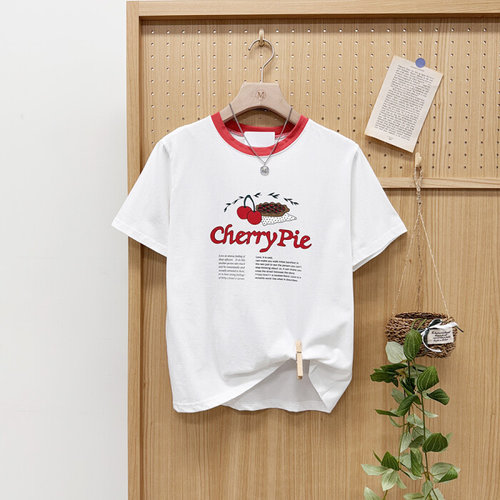 미즈큐즈 / 체리파이 프린트 레터링 실켓 배색 반팔 티셔츠 3colo