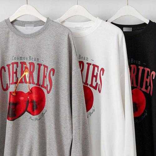 [엄지척]가벼운 라운드 여성 긴팔 체리 니트티 코디룩 20대_19677788_667501